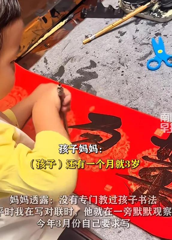最近廣東那邊有個新聞,說有孩子兩歲十一個月,居然能寫春聯了。他現在連筆都拿不穩,但寫著還挺流暢。家長說完全沒特意教,就是平時愛看對聯。這事在網上炸開了鍋,有人覺得神童,有人擔心揠苗助長。