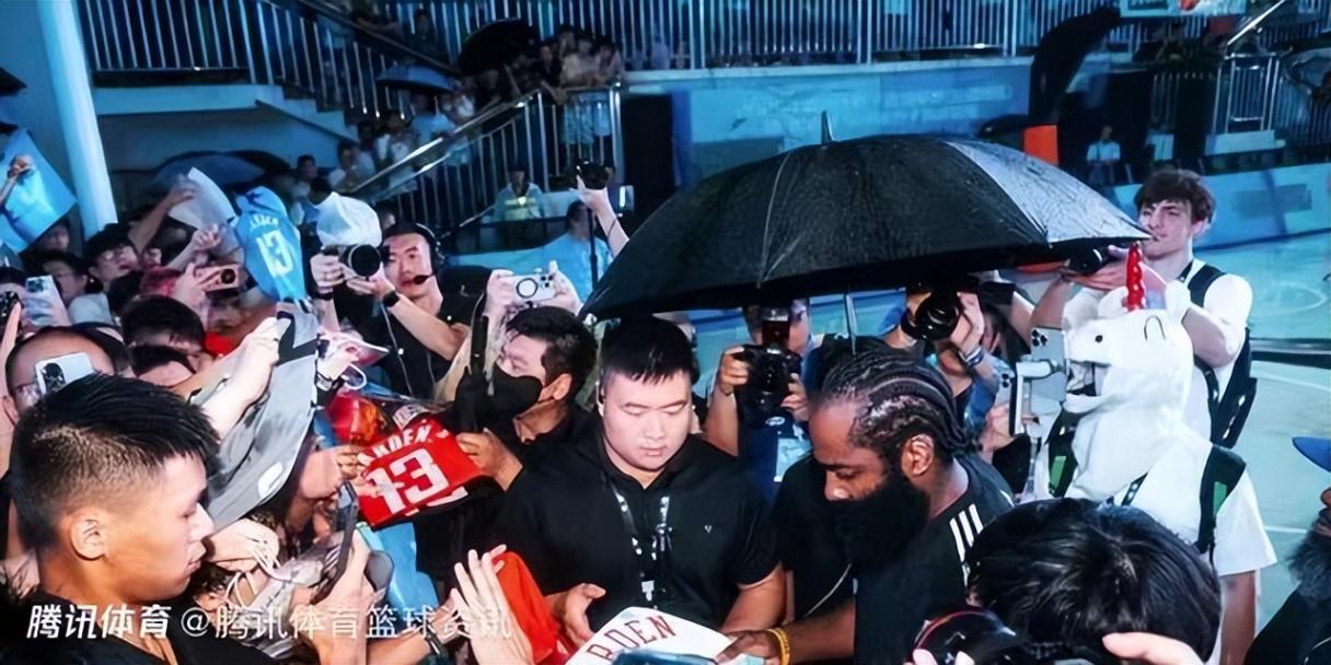 北京時間8月5日,哈登在中國行活動中再次展現出了自己有愛的一幕,他冒雨為中國球迷進行了簽名。