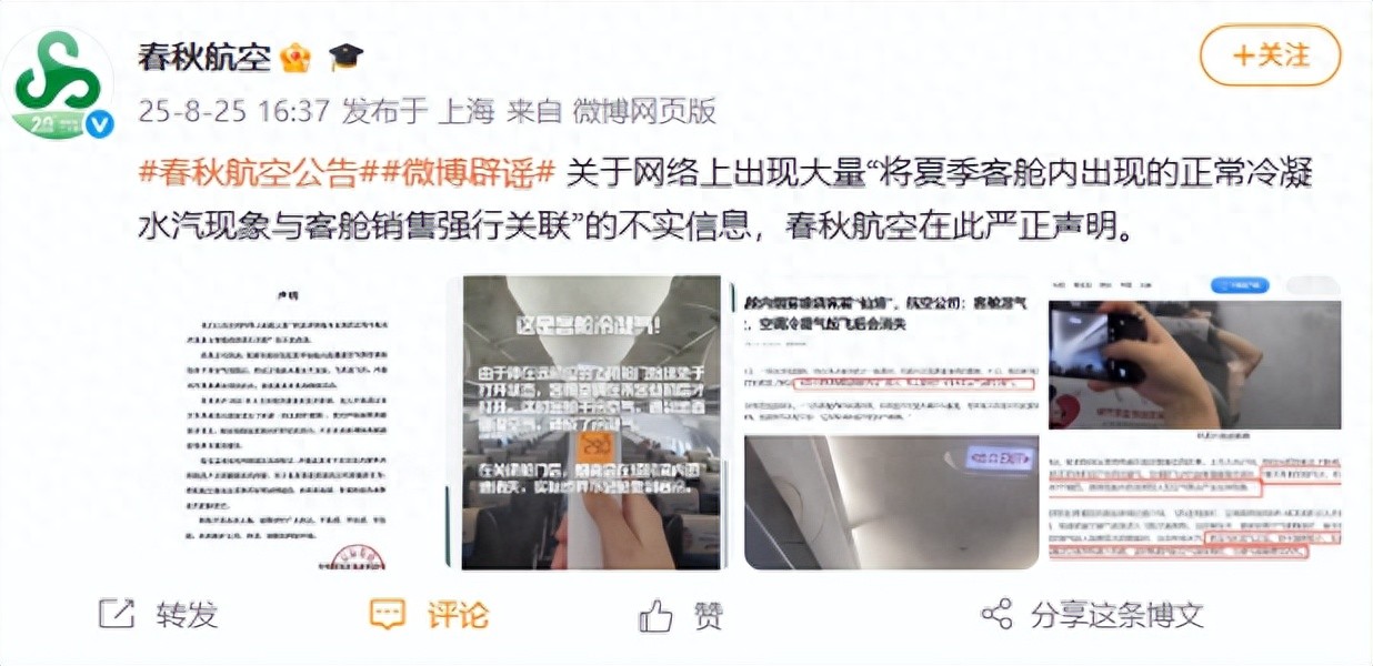 近日,春秋航空因"客艙溫度過低""毛毯收費(fèi)"等問題引發(fā)網(wǎng)絡(luò)熱議。8月25日,春秋航空通過官方微博發(fā)布嚴(yán)正聲明,針對"將夏季客艙冷凝水汽與銷售毛毯強(qiáng)行關(guān)聯(lián)"的不實(shí)信息進(jìn)行辟謠,并就乘客關(guān)注的"溫度控制""毛毯收費(fèi)"等爭議作出回應(yīng)。這場由"冷"引發(fā)的輿論風(fēng)波,折射出廉價(jià)航空服務(wù)中乘客體驗(yàn)與商業(yè)模式的深層矛盾。