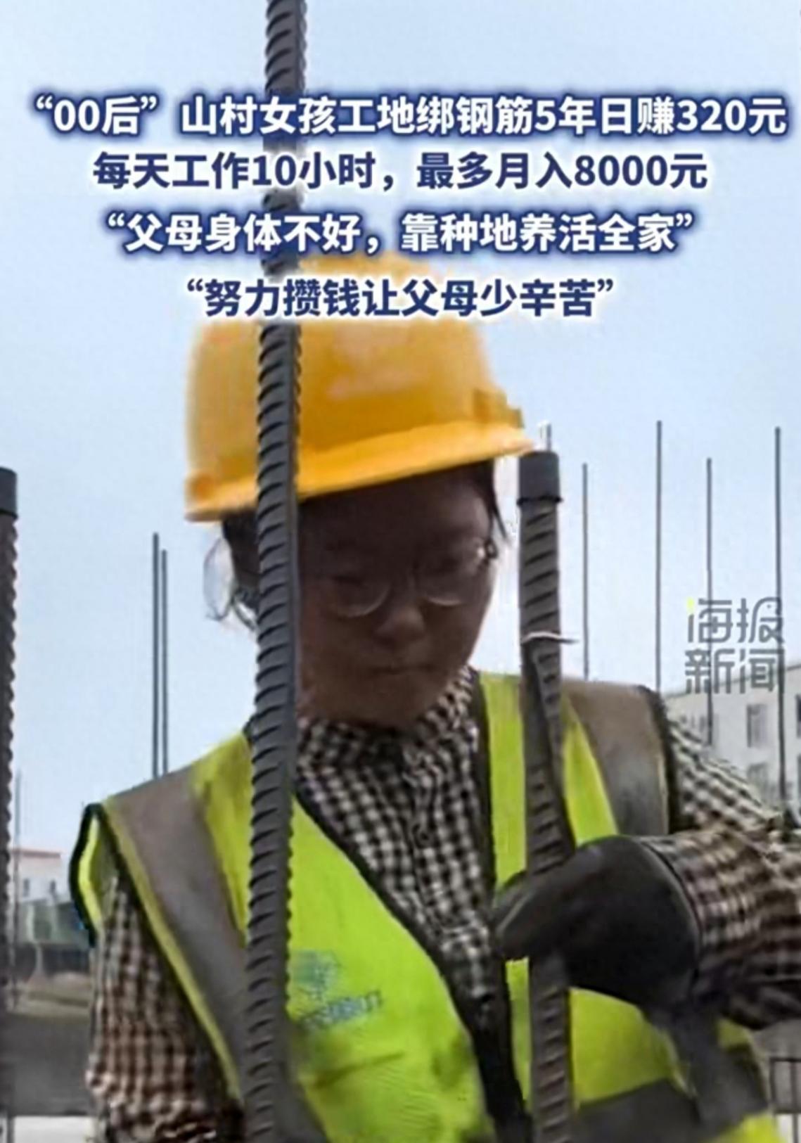 2020年,聽聞工地日薪可達200元,19歲的她不顧艱辛,毅然決然地奔赴陜西。從最初蹲一天腳就酸得站不起來,到如今能熟練完成鋼筋綁扎,她輾轉了十個工地,日薪也漲到了320元。如今,她每月能存下6000至8000元,成了全家名副其實的經濟支柱。