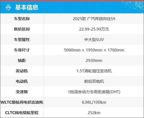 2025款廣汽傳祺向往S9共推出4款車型,售價區(qū)間為22.99-25.99萬元。新車全系標(biāo)配插電式混合動力、雙電機(jī)四驅(qū)系統(tǒng)以及華為乾崑ADS 4 Max超階版輔助駕駛方案等,為用戶提供低能耗+智能化的全新體驗。