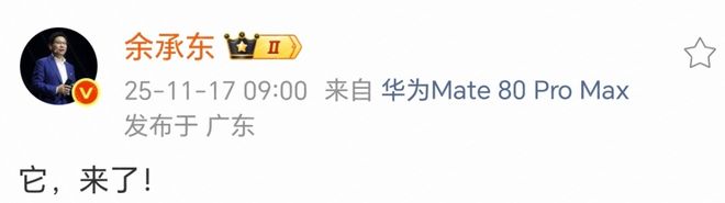 與此同時,余承東也展示了華為 Mate 80 Pro Max 的微博“小尾巴”,表明華為 Mate 80 系列首次引入 Pro Max 版本,或將替代之前的 Pro+ 型號。