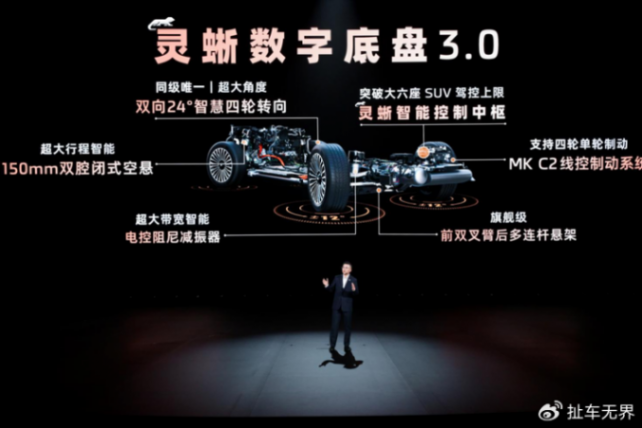 而更值得關注的是,這種靈活并未以犧牲操控穩定性為代價,其配備的靈蜥數字底盤3.0,融合了前雙叉臂后多連桿懸架、電控阻尼減振器以及150mm超大行程雙腔閉式空懸,通過矢量控制技術可減少46%的過彎側傾。即使連續彎道中,車身姿態可以做到始終保持穩定,讓大車也能當成小車開,從根本上打破技術桎梏。